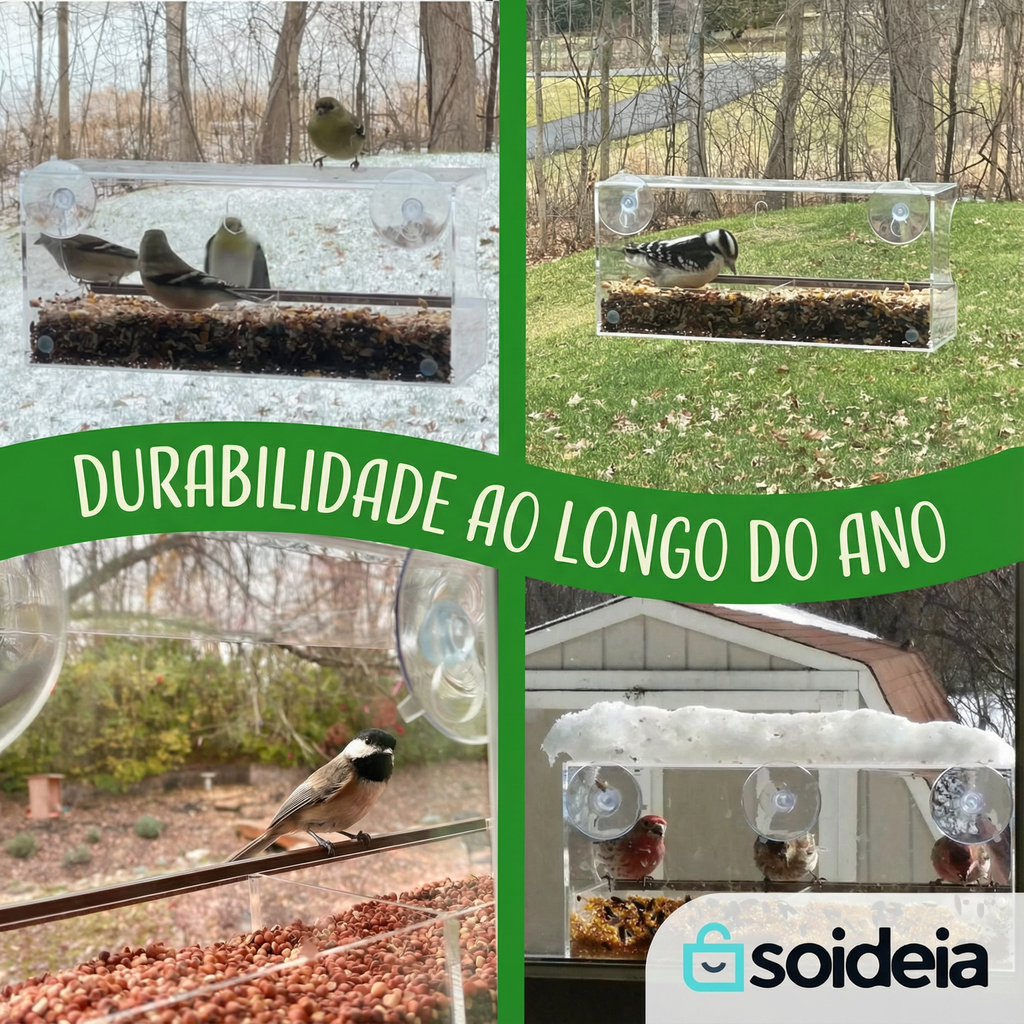 O acrílico cristalino, moldado a quente, oferece uma visão em alta definição de cada pena, piscada e inclinação do bico — enquanto nossas ventosas ultra-aderentes, testadas em baixas temperaturas, mantêm o comedouro fixo por mais de 12 meses, mesmo durante tempestades de inverno.